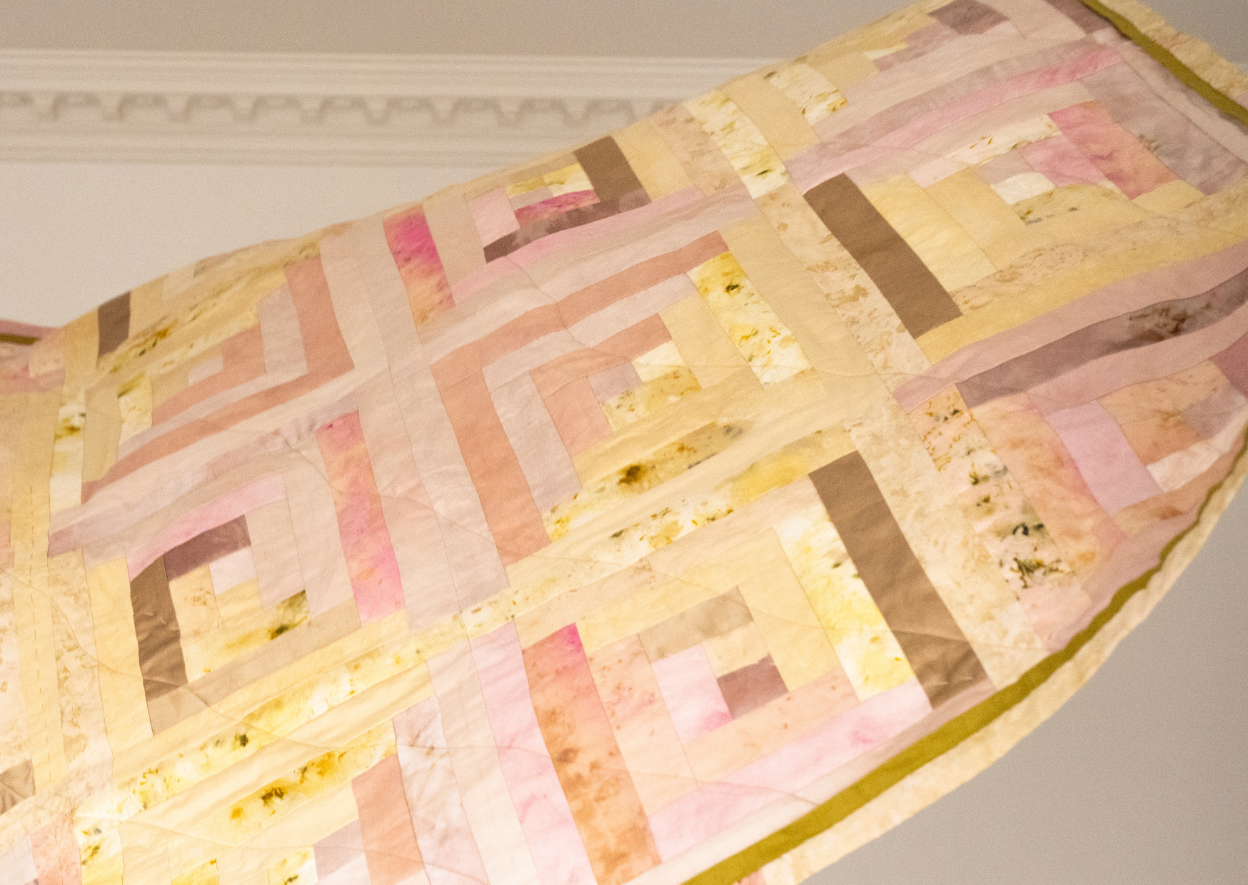 This quilt has been quietly becoming for some time. Last summer, I got married to my partner Mish. Before the ceremony, in the garden, we gathered armfuls of flower petals—each chosen not just for beauty, but for their natural dye magic. Marigolds, rose, cosmos and coreopsis petals carrying colour in their veins. When the ceremony ended, we were showered in this cosmic confetti, thrown by the people who love us most. The petals drifted down onto old family cotton sheets, carefully laid along the aisle by dear friends.