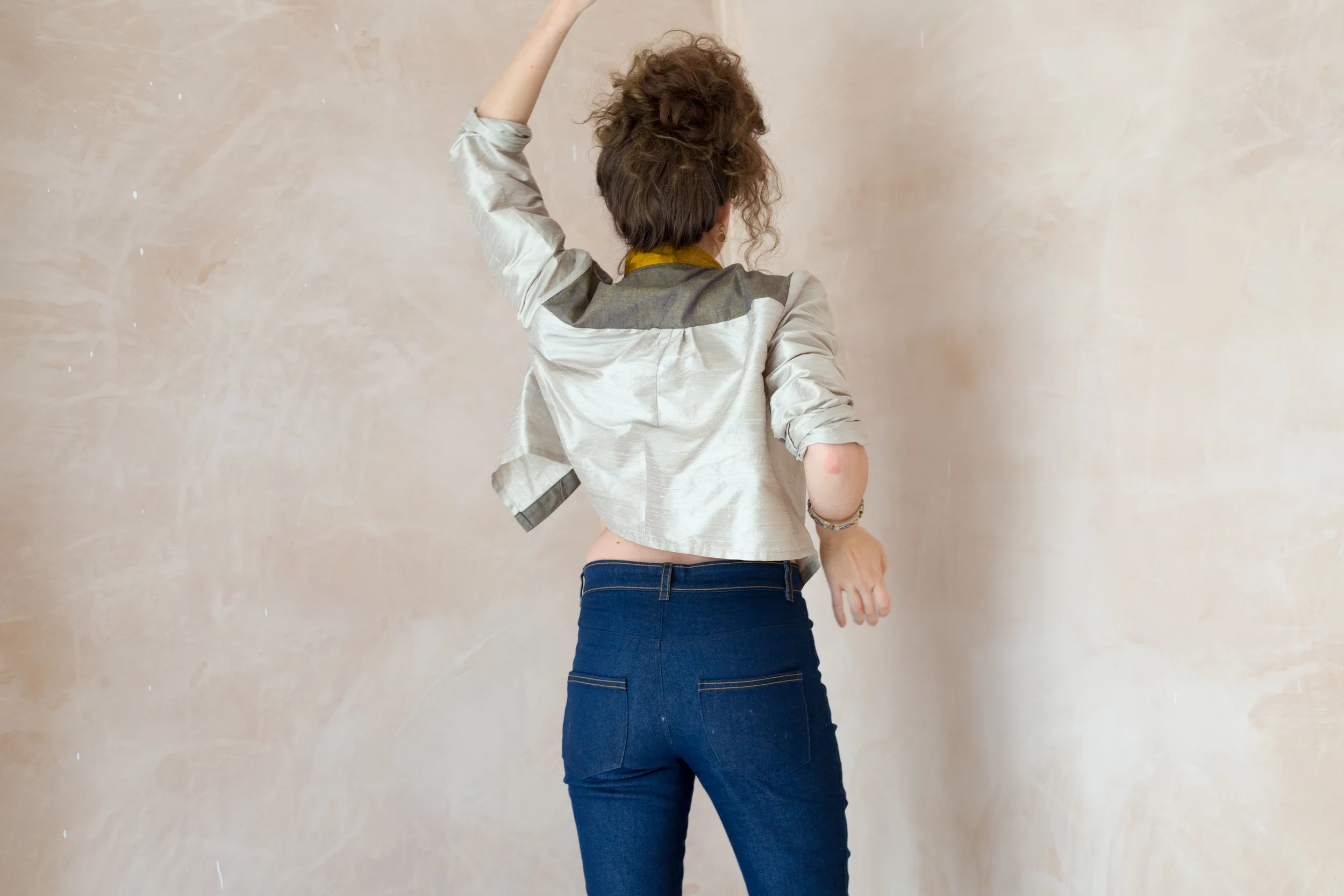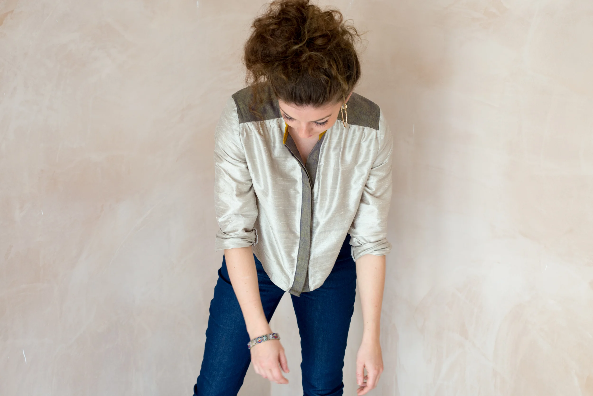 This shirt started life out as a jumpsuit. Somehow in my head a silver silk jumpsuit was a simple, wearable thing I could just throw on! I was half way through sewing it up, when I had a moment of clarity and realised that silver jumpsuits are in fact only really suitable for flying to the moon. So I cut it in half and turned the top into a little cropped shirt. Don't worry, the bottom half wont be wasted it will become some smart trousers soon. But until then I'm pretty chuffed with the shirt, it has a proper button placket and everything!